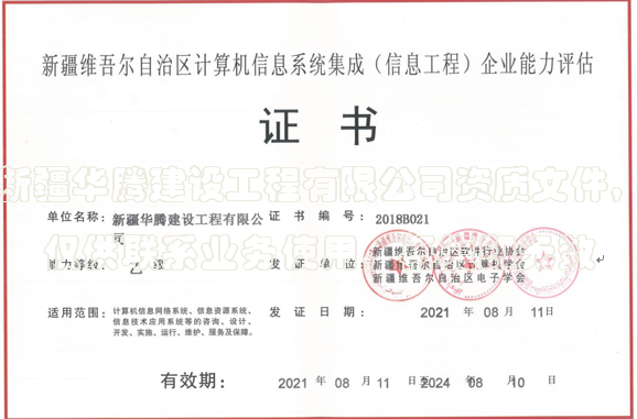 新疆維吾爾自治區(qū)計算機信息系統(tǒng)集成企業(yè)證書
